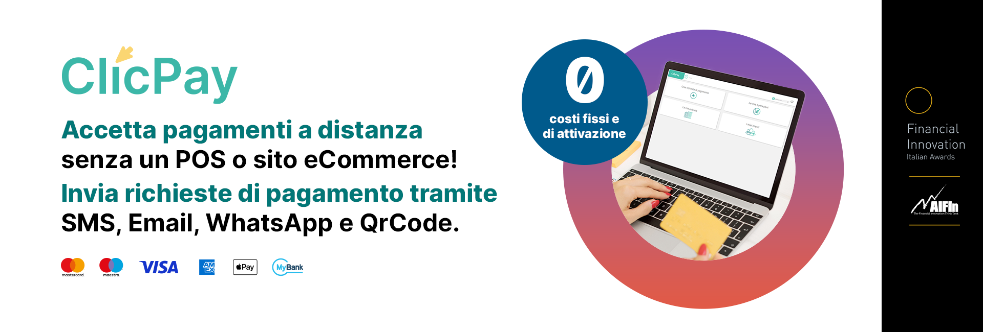 ClicPay riceve il premio AIFIn “Digital Payments – Innovation Award” 2020 come 1° Classificato per la categoria