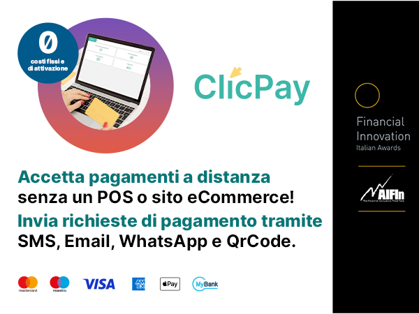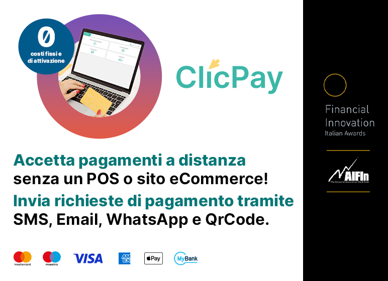 Accetta pagamenti digitali senza bisogno di un POS o di un sito eCommerce inviando con ClicPay,