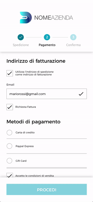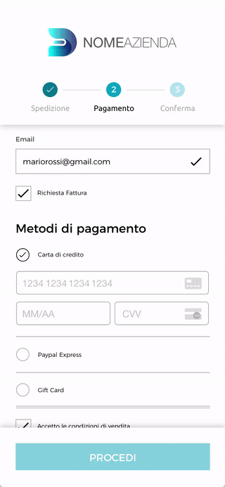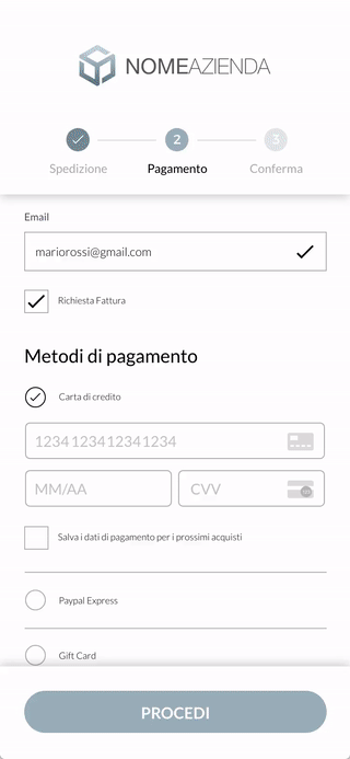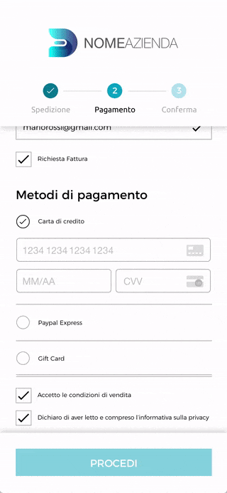 Con In-App il cliente potrà completare l'acquisto direttamente nella tua App, in maniera semplice e veloce.