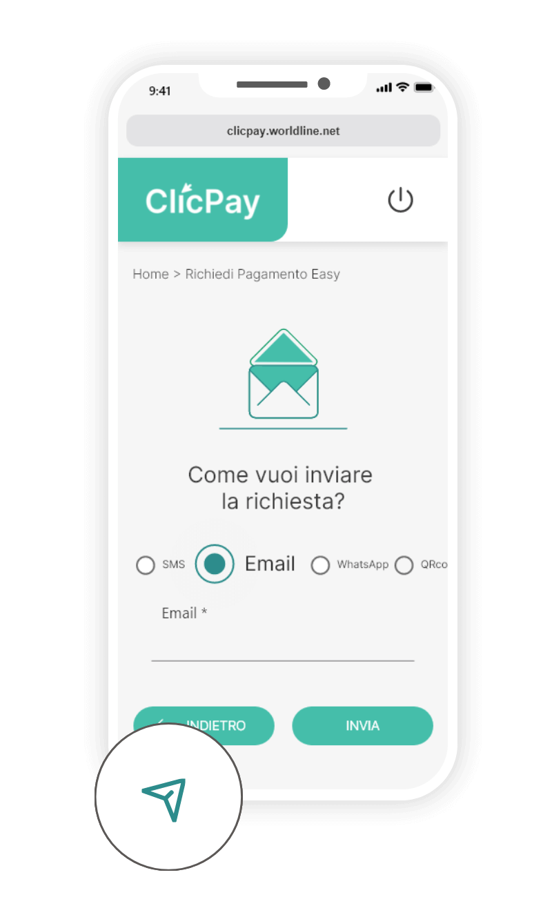 Comprende tutte le soluzioni eCommerce (pHey!) per siti web e APP in aggiunta al servizio ClicPay, utile per inviare richieste di pagamento tramite SMS, email, WhatsApp e QR Code.